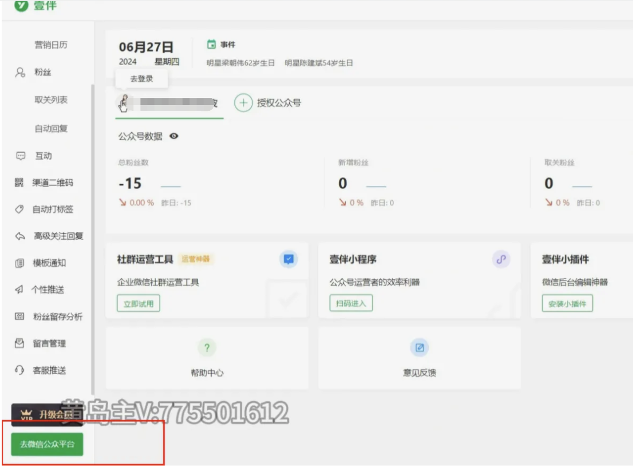 点击安装小插件,安装完成后自动弹出来让你添加,点击添加,或者点击手动安装,把下载好的小插件拖到浏览器里面,安装好后打开壹伴官网。https://yiban.io/dashboard/,登录自己的公众就可以在公众号后台使用壹伴插件